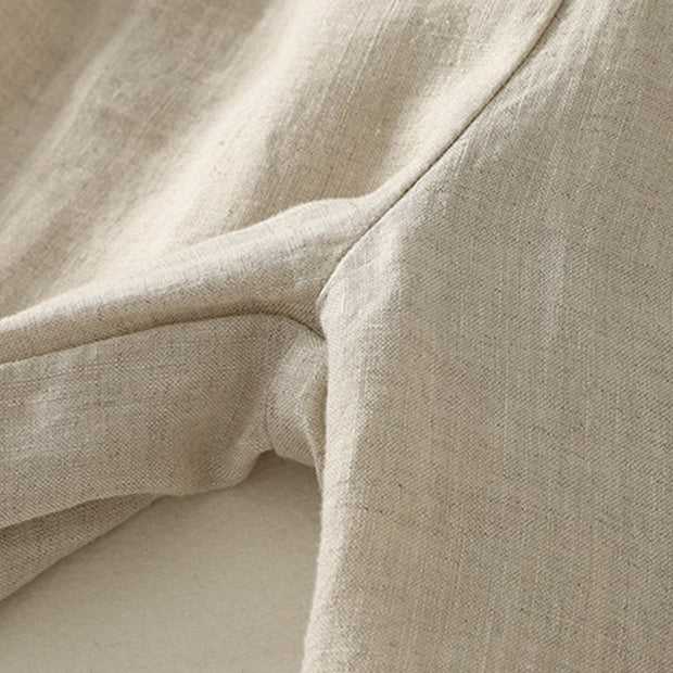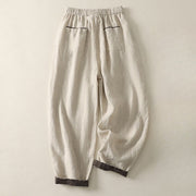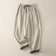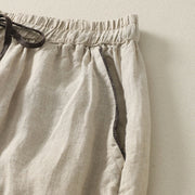 Buddha Stones Summer Casual Pure Color Drawstring 9 Length Cotton Linen Women's Harem Pants With Pockets